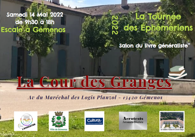 En partenariat avec le service culturel de la Mairie de Gémenos et Cultura Aubagne, l’Association « Salon du livre éphémère ou pas » organise un Salon du livre dans la Cour des Granges à Gémenos. 30 auteurs de la région présenteront leurs œuvres…