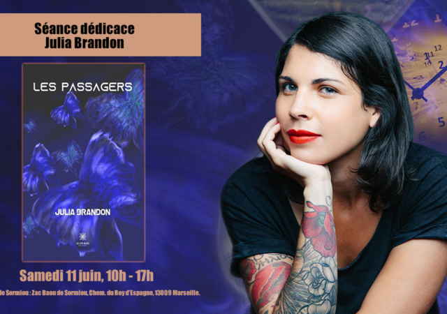 Julia Brandon, une auteure Marseillaise, présentera son roman fantastique « Les passagers » le samedi 11 juin, au E.Leclerc de Sormiou. Pour l’amour de sa fille il voyagera au travers du temps Après avoir écrit plusieurs nouvelles dont certaines récompensées, Julia…