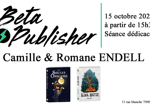 Ce samedi 15 octobre, à partir de 15h30, deux autrices, Romane Endell et Camille Endell, présenteront et dédicaceront leurs ouvrages respectifs au sein du café littéraire, le BKNK (Book Nook) à Paris, au 11 rue Blanche 75009. A la découverte…